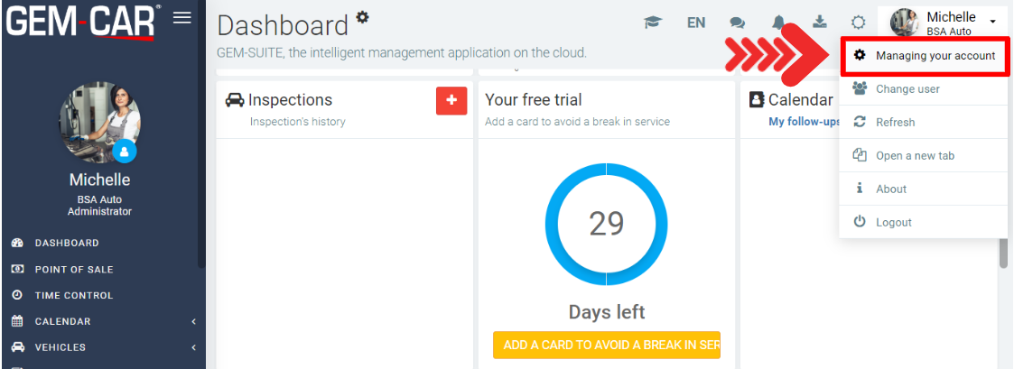Click on Managing your account.