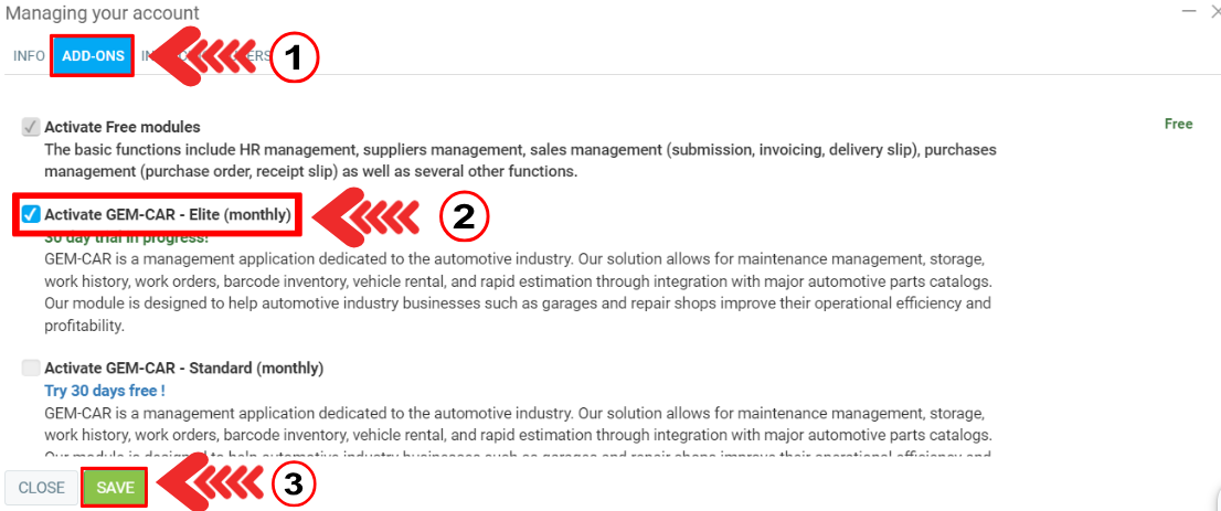 It is in the Add-Ons tab where you can easily select the modules for which you want to subscribe.