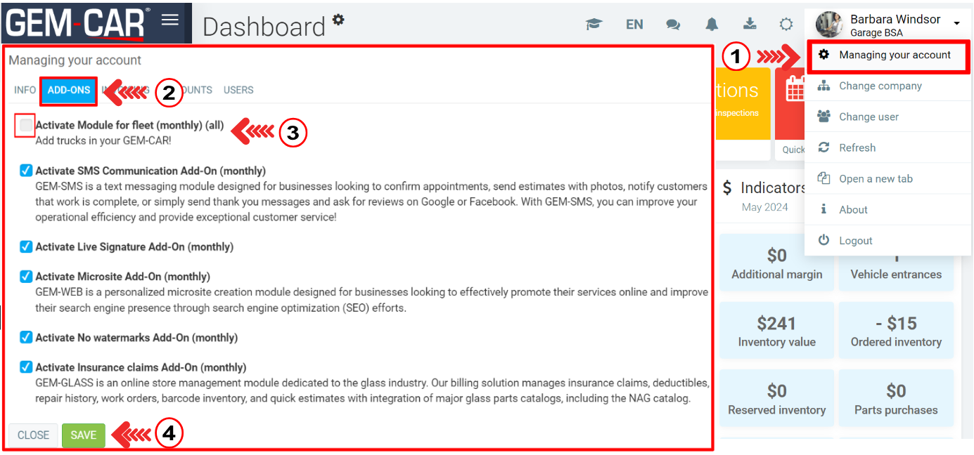 Click in the top right corner, next to the garage and user name, and open the Managing Your Account option.