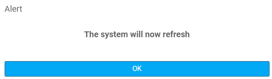 If either of the first two options is selected, an alert box opens with the message: ''The system will now refresh''.