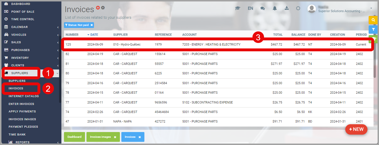 To view invoices, go to Suppliers > Invoices from the main menu. Find your invoice in the list.