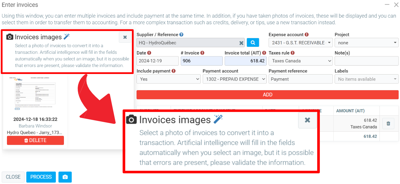 When you select a photo of an invoice, the AI in your GEM-CAR, the blue wand, will automatically extract and complete the transaction fields for you.