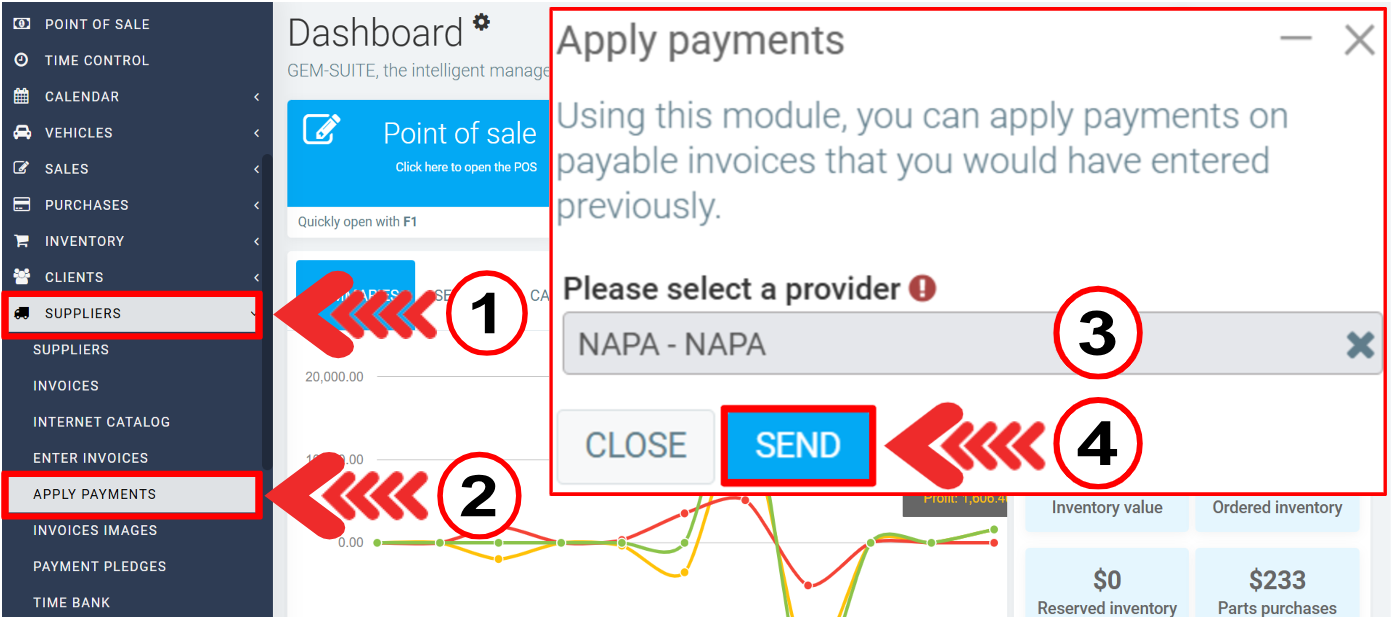 - Click in the payment field opposite the invoice(s) you wish to pay.