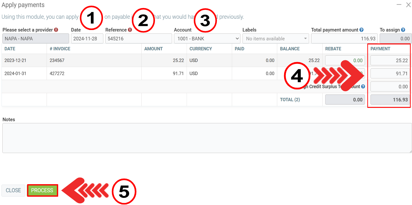 Note: Edit the amounts in the payment field, if you wish to pay less than the full invoice amount.