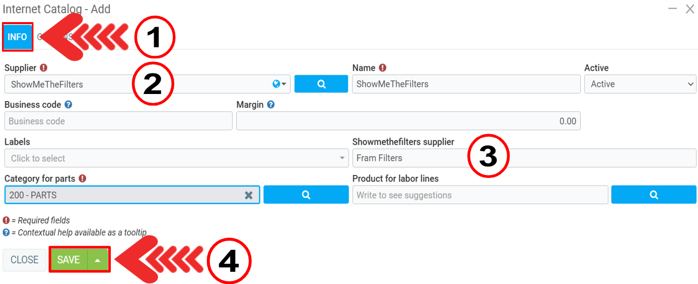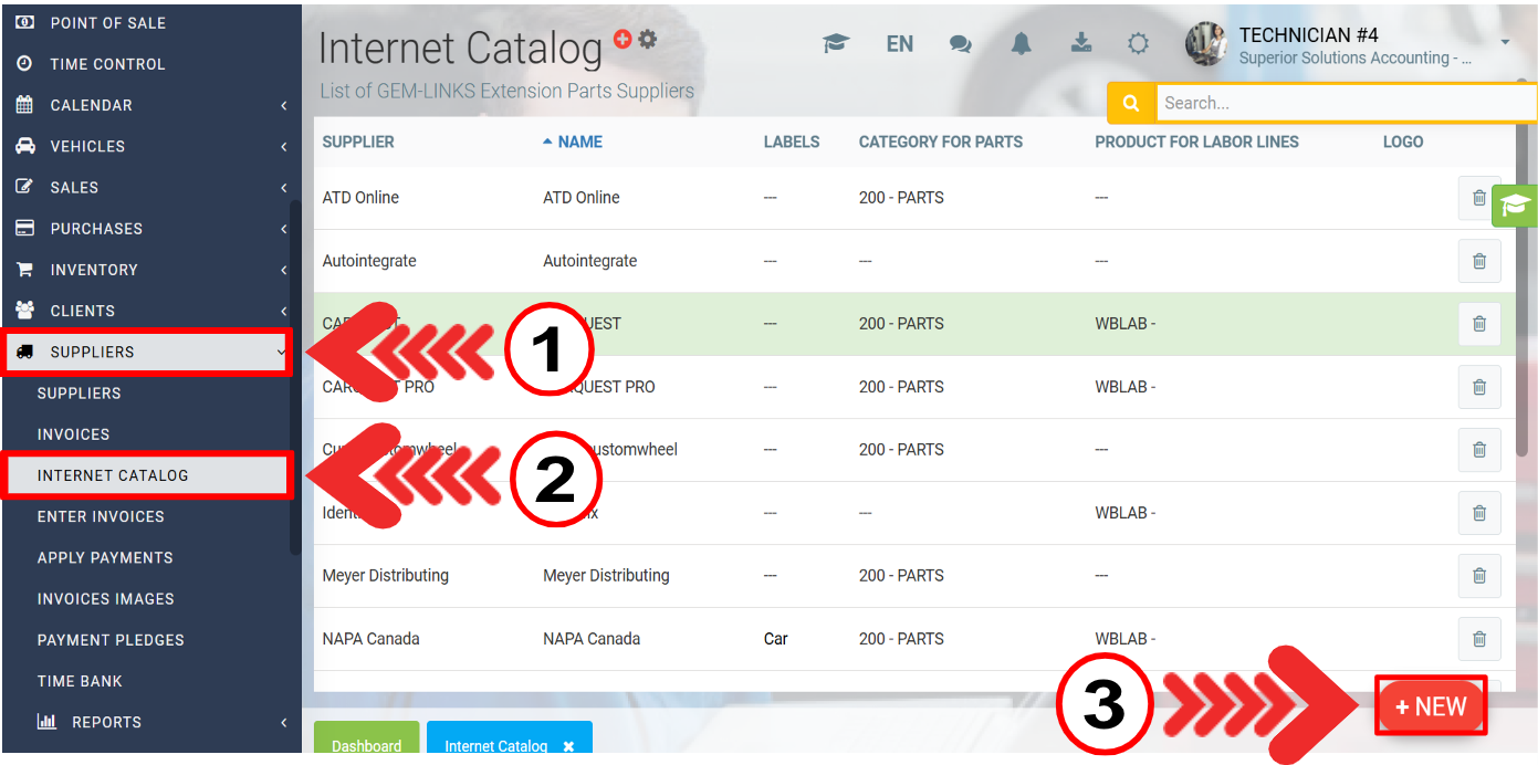 To configure ShowMeTheFilters in your GEM-CAR, click on Suppliers > Internet Catalog > +New.