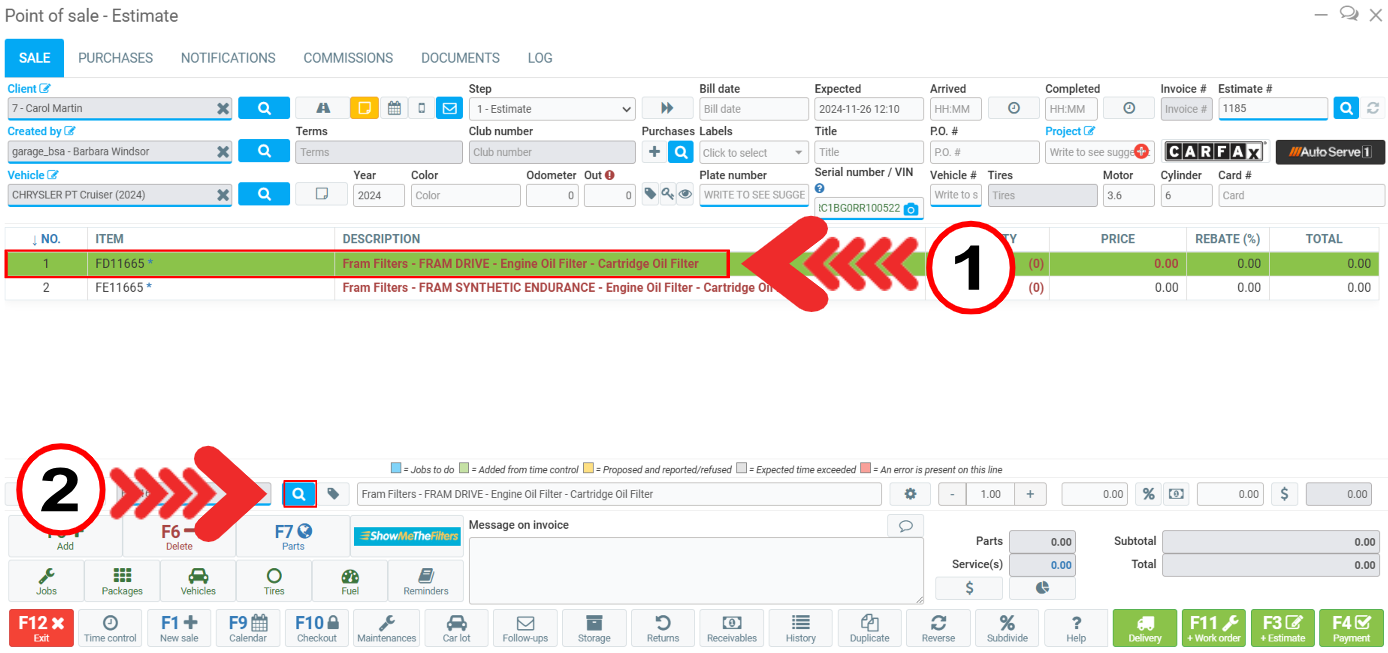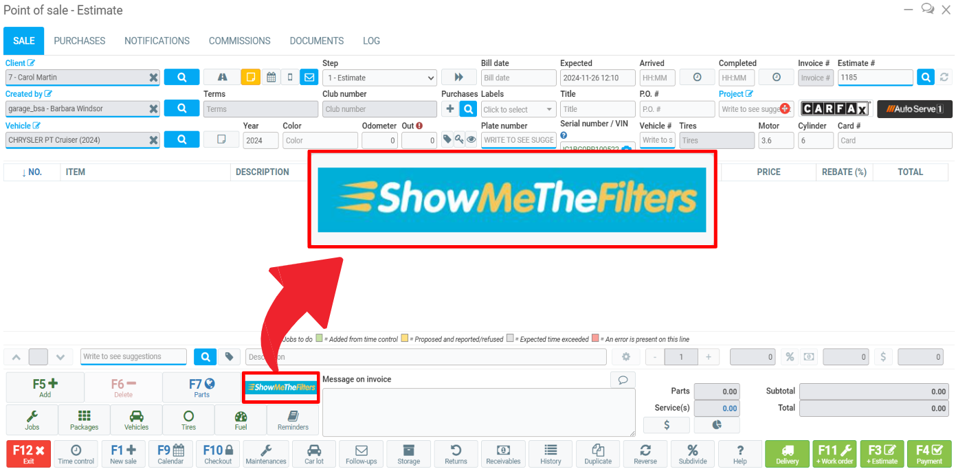 You will then be redirected to the Point of Sale. Click on ShowMeTheFilters, between F7 Part(s) and Message on invoice.