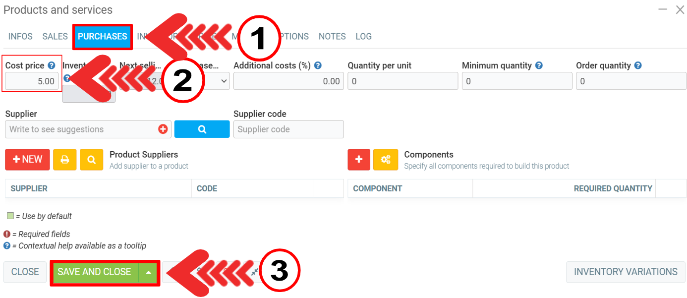 In the Options tab, check the “Used by default (Button in POS)” box.