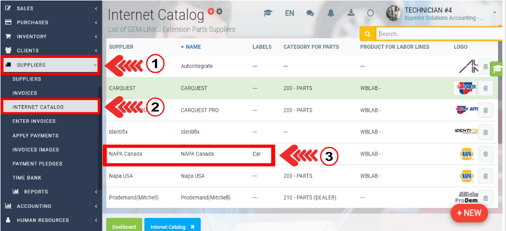 To configure the default supplier, click on Suppliers > Internet Catalog.