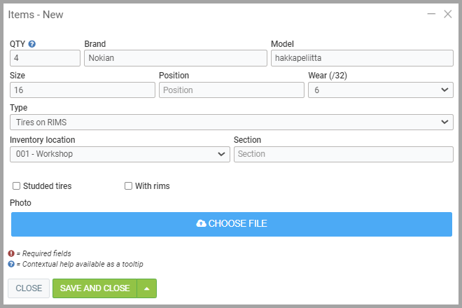 Click on +New to enter the items to be stored. You can then fill out the form.