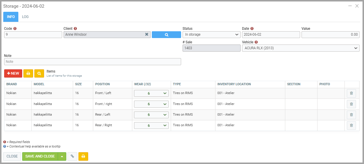 Placing Client Tires in Storage from the Point of Sale