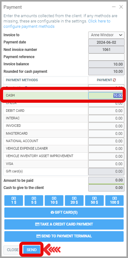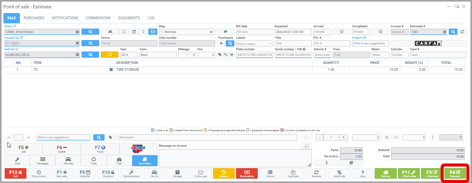 Click on Send. When the payment is made, depending on the system, the tires are stored.