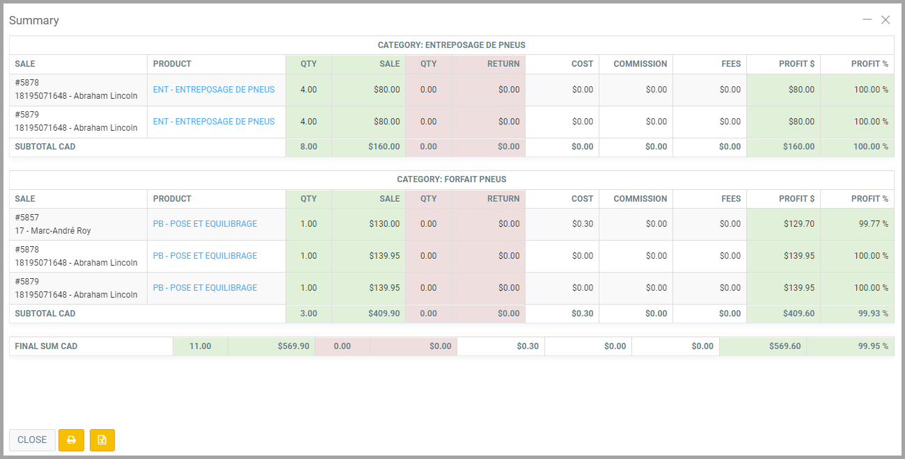 GEM-CAR allows you to obtain a detailed report on tire sales and even tire-related services. This report can be useful to analyze to prepare for the upcoming season orders, inventory, etc.