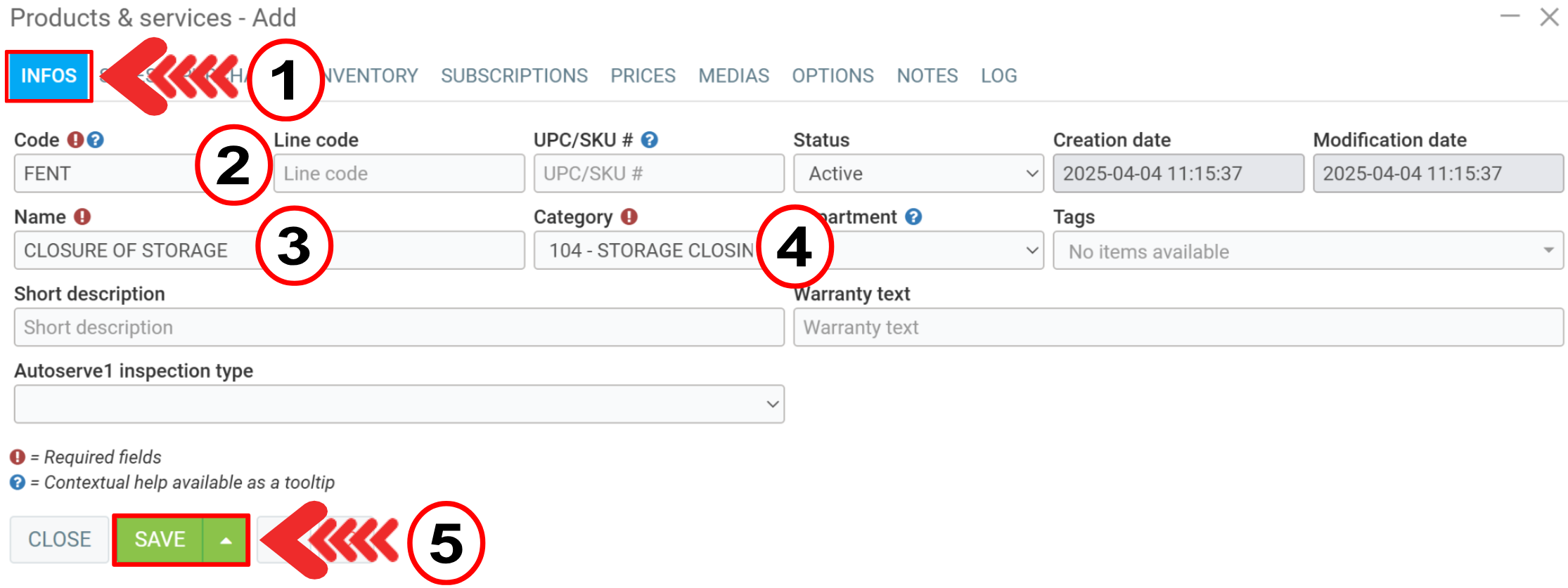 Create a new product with the Code FENT and the Name Storage Closure.