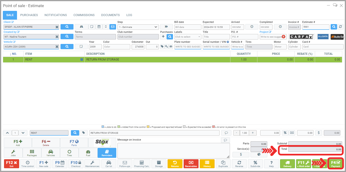 Proceed to Payment even if the balance is $0 to remove the tires from storage in the Gem-CAR system.