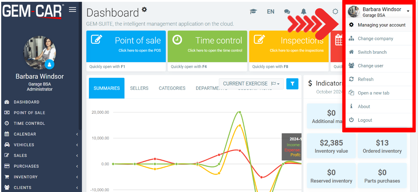 - Click on your name at the top right to access the dropdown menu.