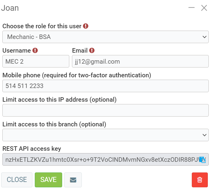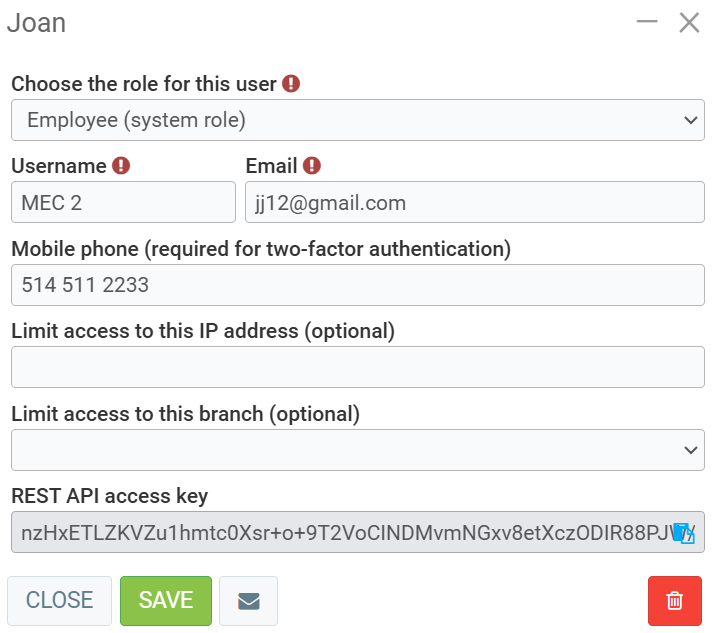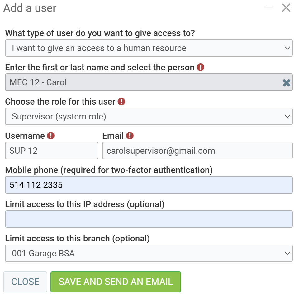 The user must have been previously created as a human resource, client, or supplier. Read the following articles for more details: