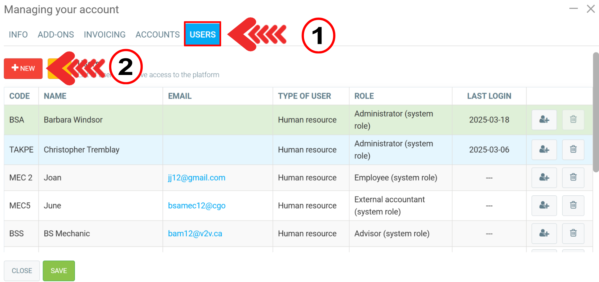To modify or create access for your contacts to your company on GEM-CAR, whether they are human resources, clients, or suppliers, follow one of the procedures below.
