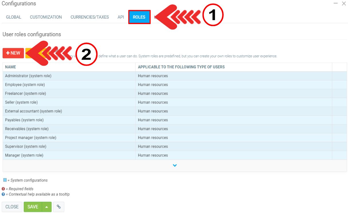 Your system comes with several predetermined roles called System Roles, which meet most business needs.