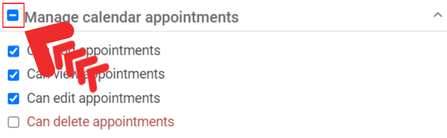 - Click on the square to the left of the set name to assign or remove all the permissions of the group.