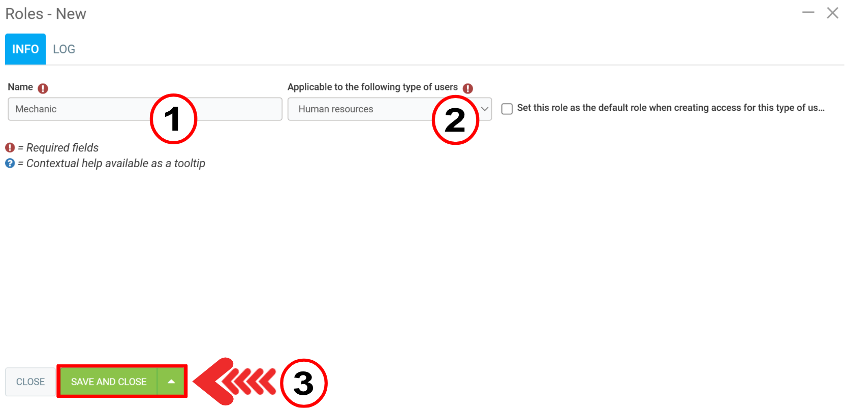 - Set this role as the default role when creating access for this user type: Check this box if you want this new role to become the default role for this user type.