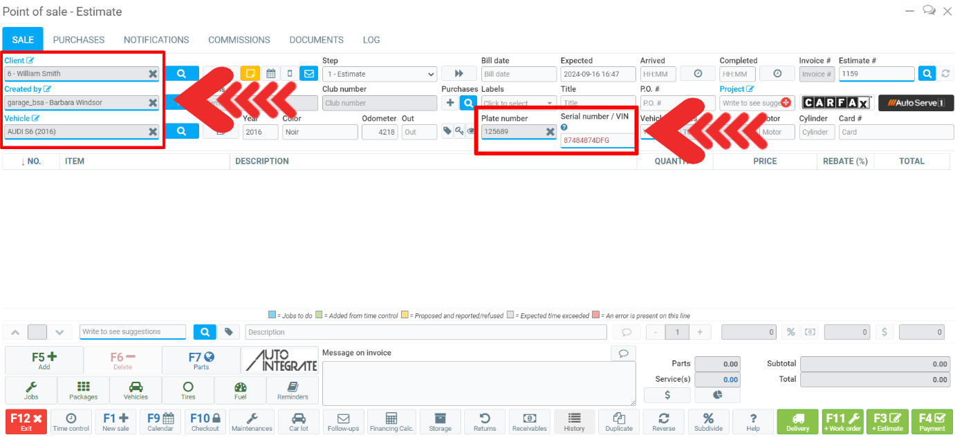 The remaining vehicle information appears in the Point of Sale, and you can continue creating the sale as usual.