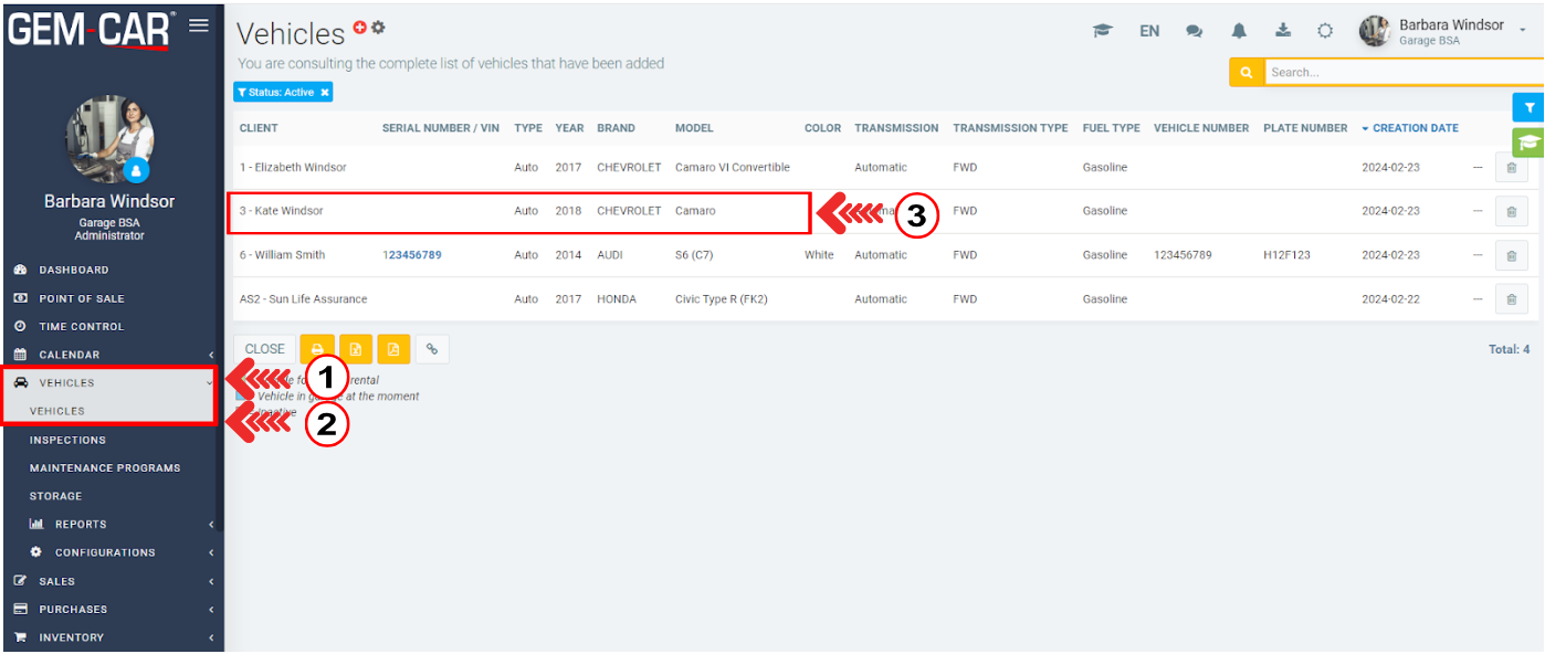 To transfer a vehicle from one customer to another, it is necessary to have both clients registered.
