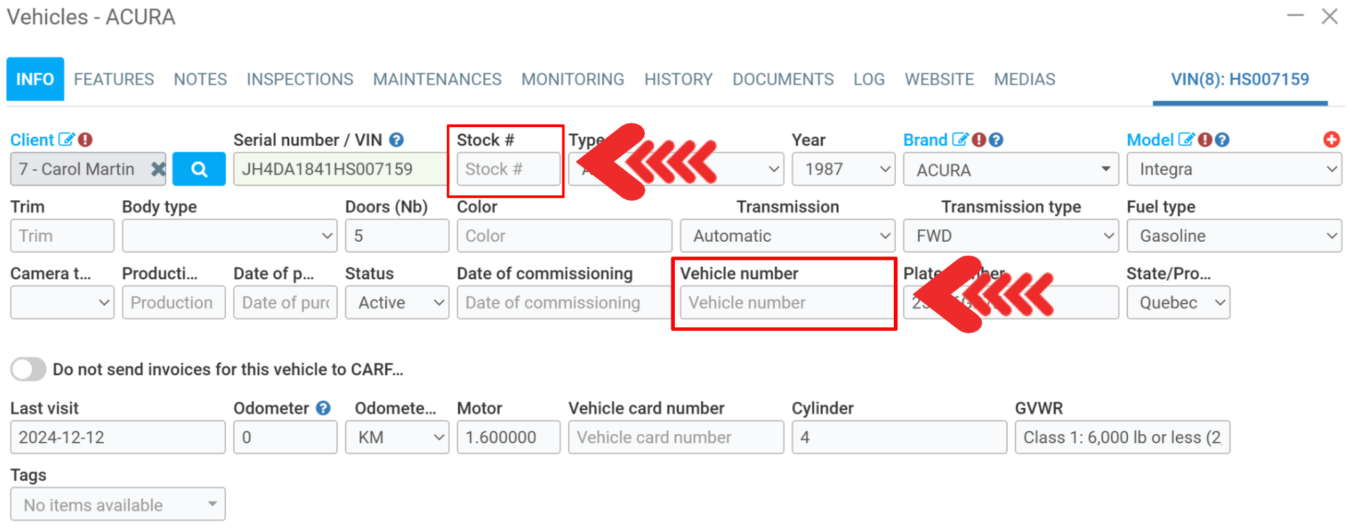 To check this information, go to the left menu Vehicles > Vehicles and select the desired file.