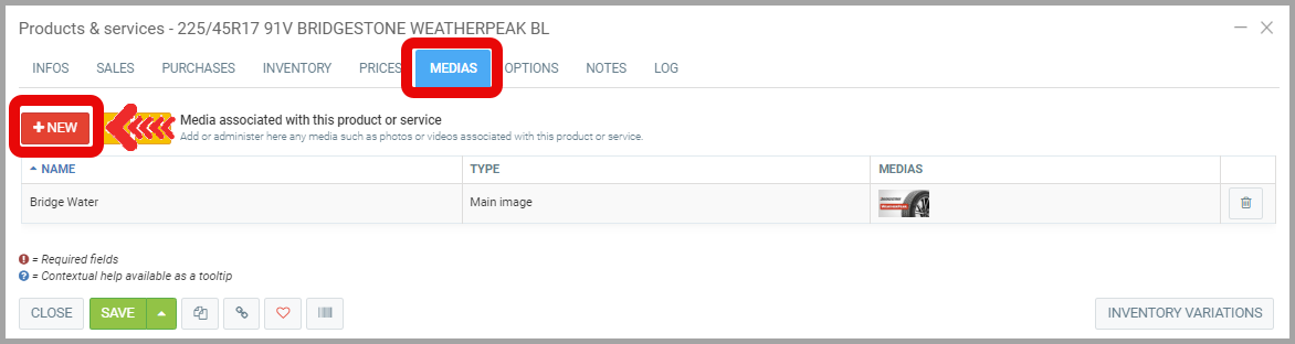 - Click on Save and close and the image will be added to the list of media associated with the product.