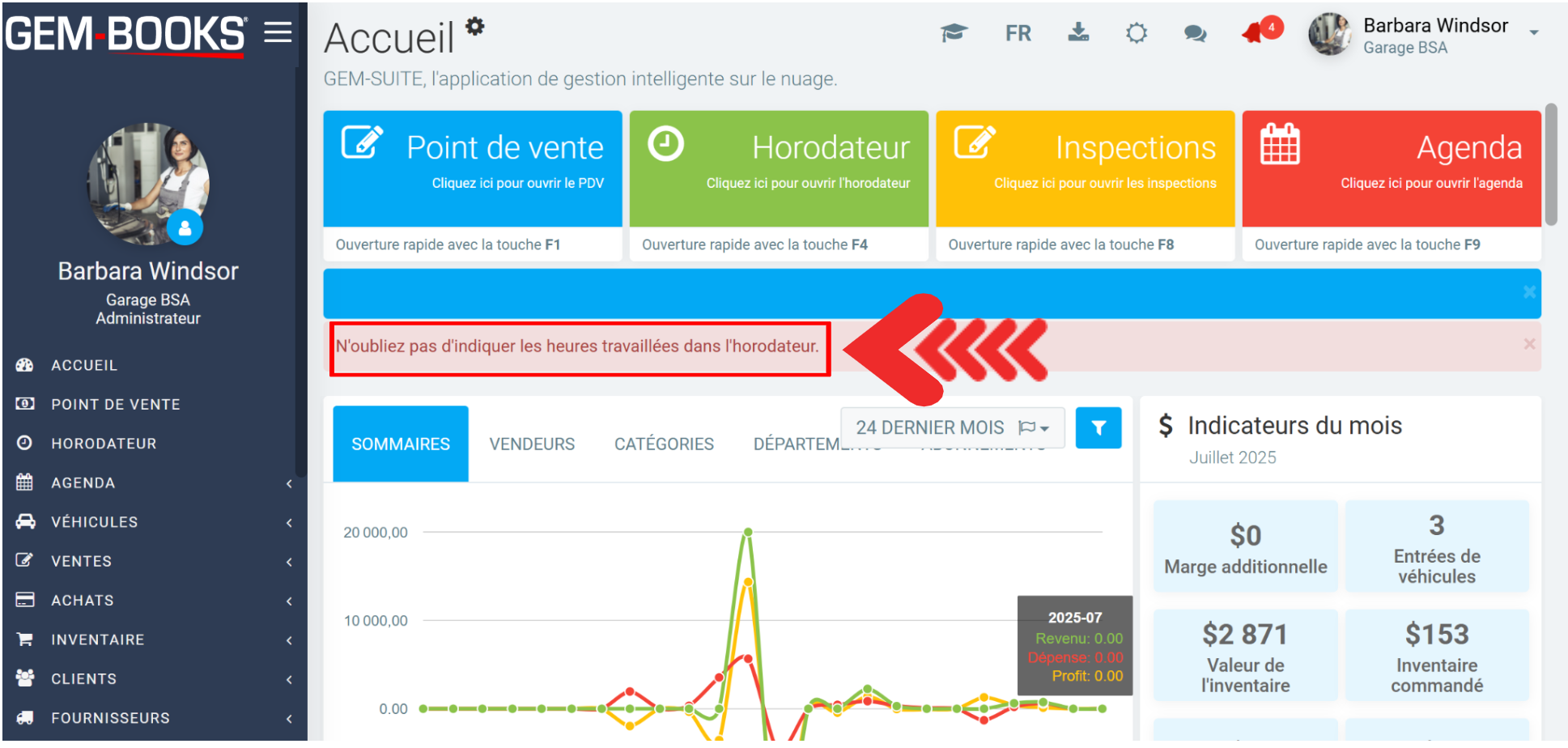 Cette alerte peut s'afficher sur votre tableau de bord, ou bien sur celui de vos employés, des pigistes qui travaillent pour vous, de vos fournisseurs, etc.