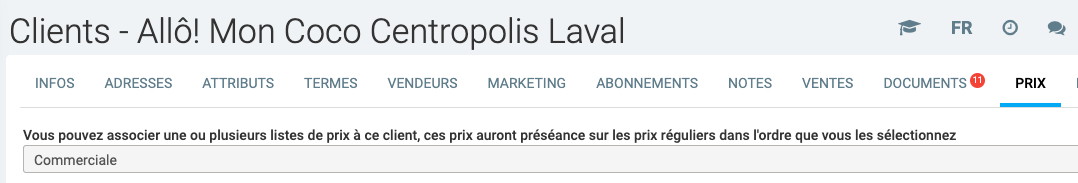 Associez-la ensuite aux membres dans leurs fiches clients, onglet Prix.