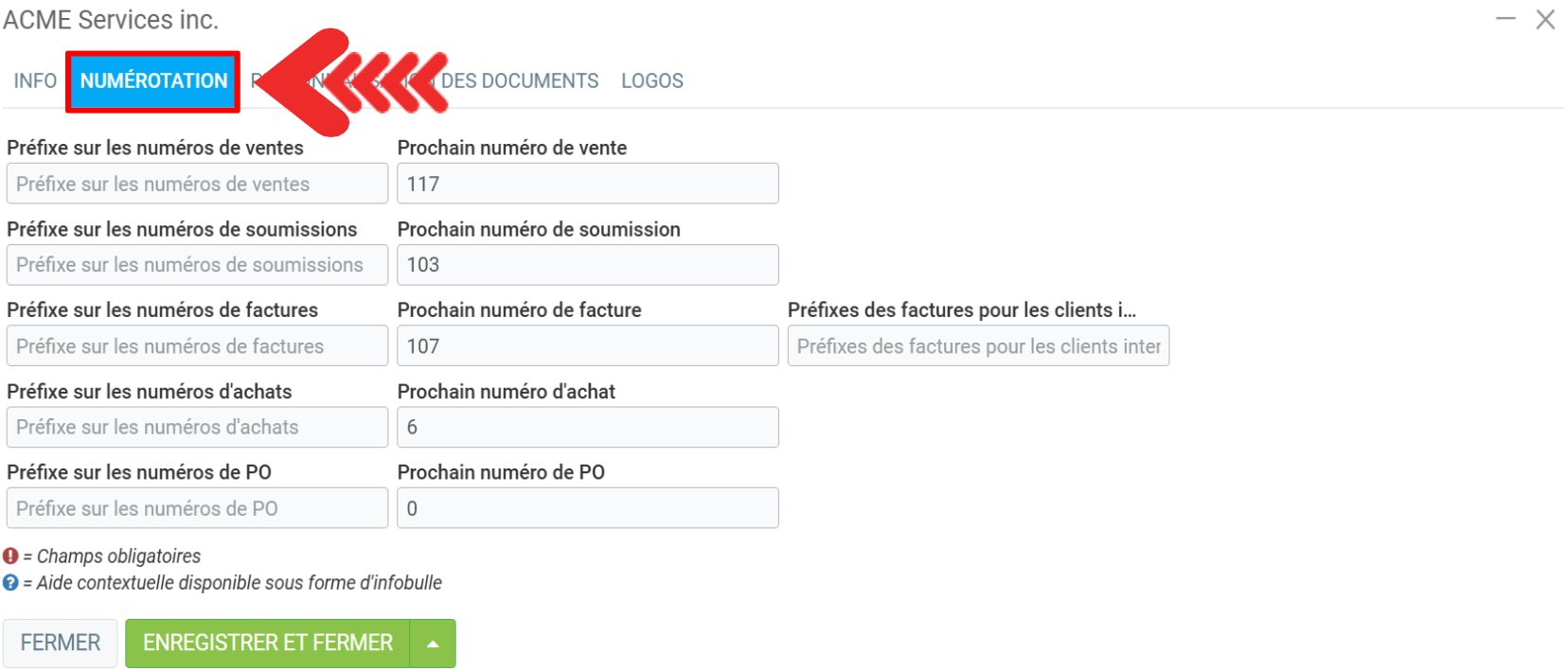- Prochain numéro de facture