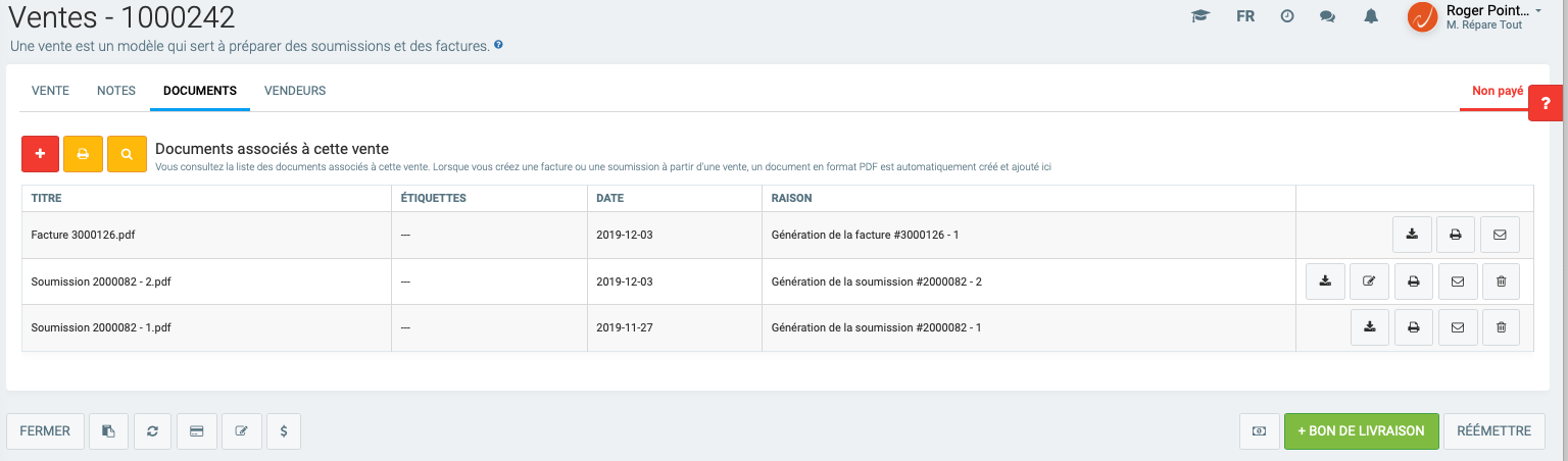 Retrouvons donc ci-dessous la fiche Vente numéro 1000242 telle qu'elle a été laissée suite aux modifications qui lui ont été apportées...