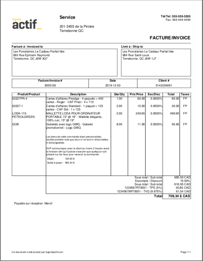 Dans le cas présent, il s'agit de la Facture numéro 3000126, que l'on peut voir ci-dessous...