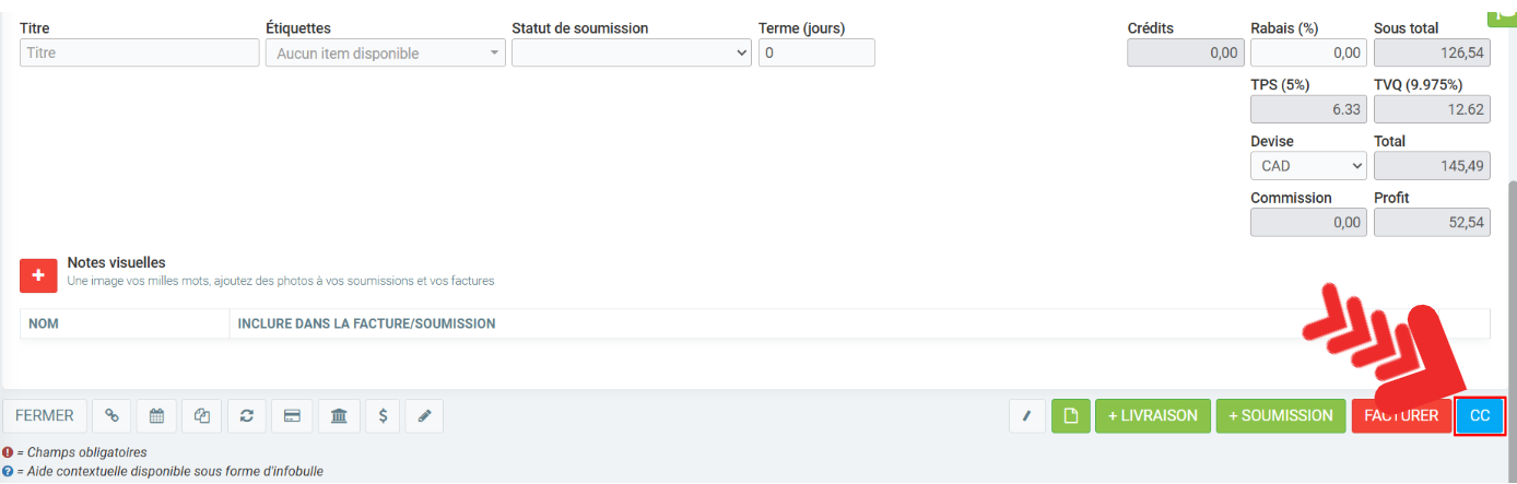 Un nouveau bouton CC devrait maintenant être affiché à côté du bouton. Il vous permet de passer un paiement par carte de crédit manuellement.