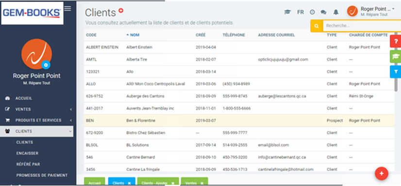 Prenons l'exemple d'un client; l'école aux quatre vents qui sur sa fiche aurait dans le champ "Facturer à", le nom de sa commission scolaire. Si vous faites des travaux à l'école aux quatre vents, c'est la commission scolaire qui sera facturée et non l'école.