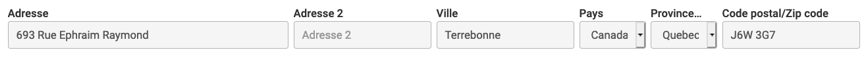 Complétez l'adresse de facturation du client. Si vous avez autorisé la géolocalisation de votre navigateur, la ville et le code postal doivent s'inscrire automatiquement.