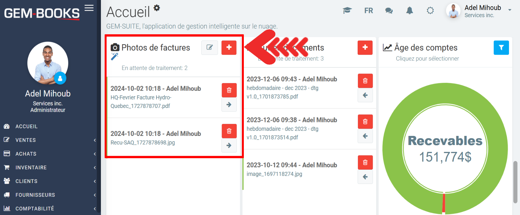 Si vous utilisez un ordinateur, vous devrez importer un fichier à partir d'un de vos dossiers. Après avoir sélectionné la photo, celle-ci se retrouvera dans la liste de photos en attente de traitement sur votre page d'accueil et dans le menu Photos de factures.