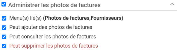 Pour empêcher ou permettre l'accès à ce module, voici les rôles et permissions associés.