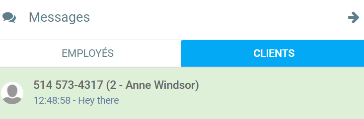 Et les messages des clients dans l'autre onglet. Avant d'être lus, les messages deviennent verts. Une fois lus, ils redeviennent blancs.