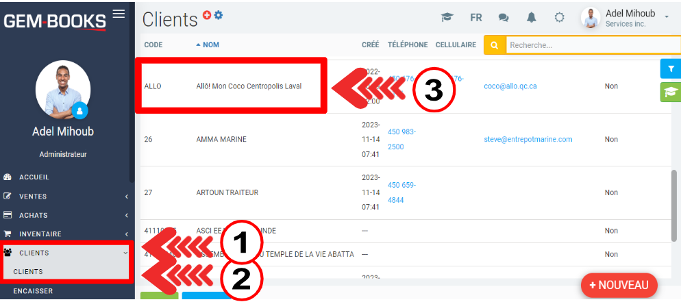 Pour consulter l'historique, rendez-vous sur Clients > Clients.