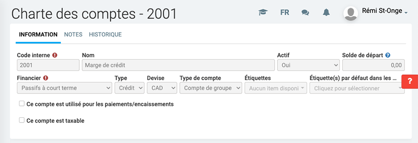 - Cochez l'option "Taxable?" afin que les taxes soient automatiquement appliquées sur les transactions effectuées avec ce compte,