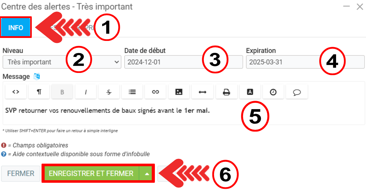 Communications > Centre des alertes: On peut maintenant cibler les communications internes vers les locataires d’une unité spécifique.