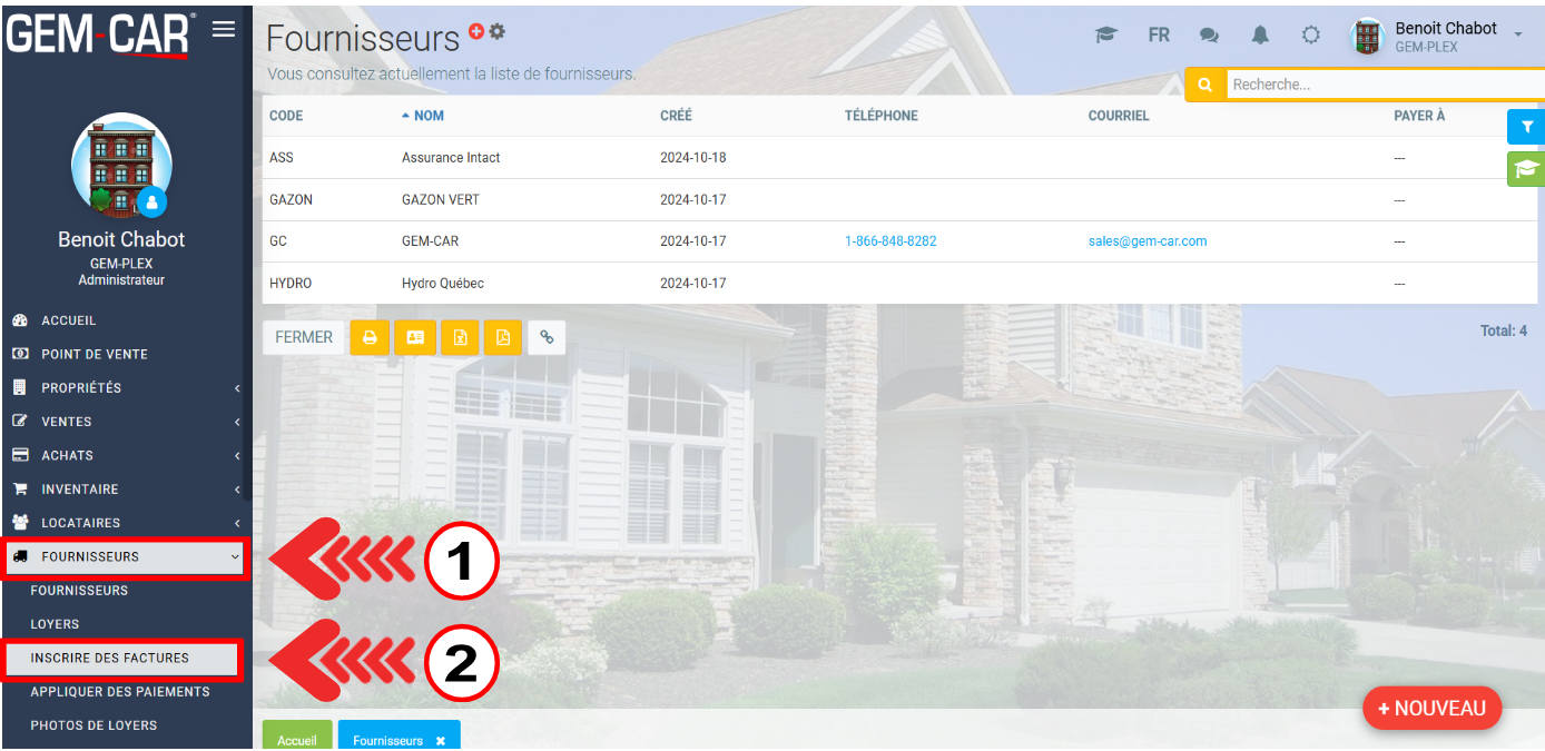 Cliquez sur Fournisseurs > Inscrire des factures.