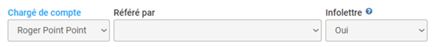 Le champ "Chargé de compte" est destiné à la personne qui se charge du dossier de ce client, qui gère son compte chez vous. C’est la personne qui est au courant de tout ce qui concerne ce client. Elle connaît tous ses mouvements, quels produits ou services il a l’habitude de se procurer auprès de votre entreprise et de quels autres peut-il avoir besoin.