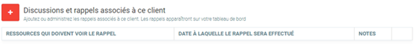 Le groupe de champs qui suit contient les discussions internes concernant ce client. Il s’agit des communications internes, entre les différents services de votre entreprise. Si la livraison est en retard, par exemple, le service livraison en informe le service commercial qui a reçu les commandes. Tout cela sera inséré dans ce groupe de champs, avec tous les détails : les personnes concernées, les personnes en copie des communications, et les dates. Le symbole “ + “ vous permet d’ajouter chaque discussion effectuée.