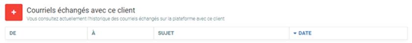 La ligne qui suit comporte des champs concernant tous les courriels échangés avec ce client. Cela vous permet de vérifier si tout ce qui devait être communiqué au client l’a été. Les détails doivent être mentionnés : qui l’a envoyé, à quel propos, et quand.