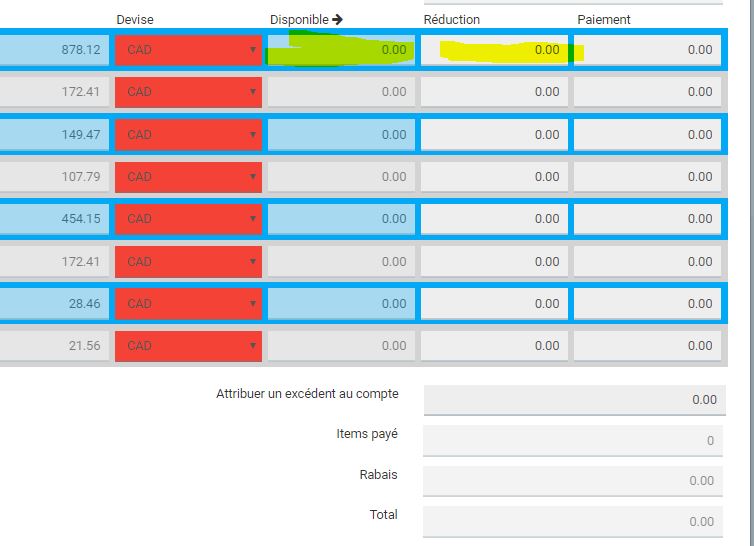 Au moment d'un paiement client, s'il a droit à un escompte, le montant sera indiqué dans la colonne DISPONIBLE au paiement, à vous d'inscrire s'il en a le droit.