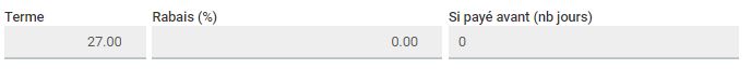Remplissez dans le champ "Rabais" le % que vous obtiendrez et inscrire le nombre de jours dans la case "Si payé avant". Par exemple, 2%, 10 jours.