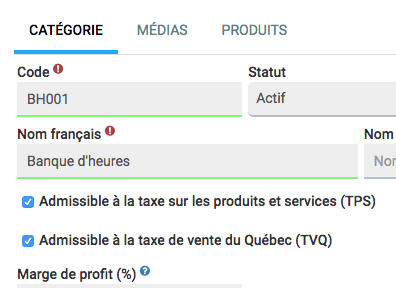 Créer la catégorie "Banque d'heures" Exemple :