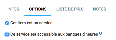 Allez dans l'onglet "OPTION" et spécifier que c'est un service et accessible aux banques d'heures.